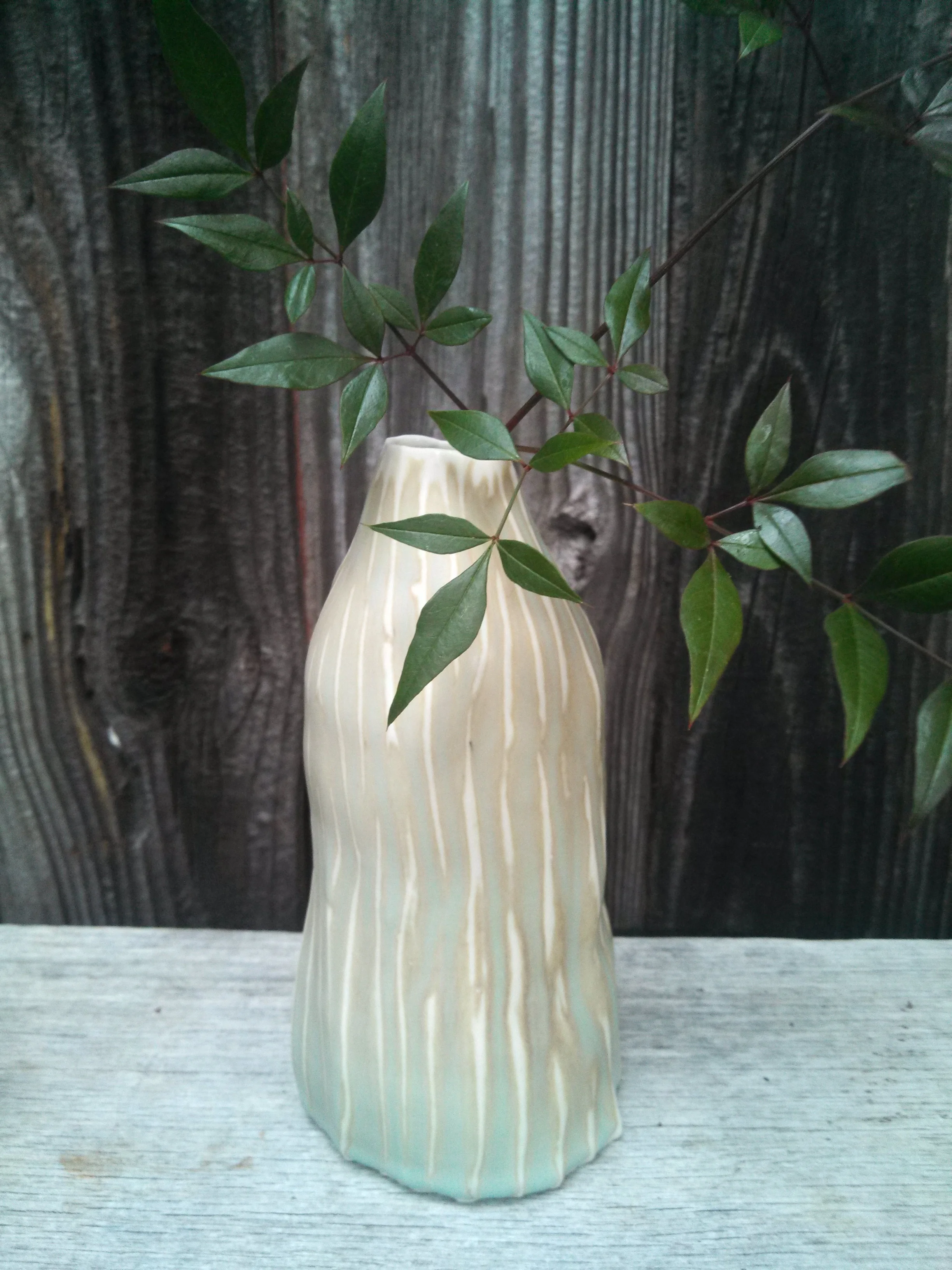 Nature’s beauty in color, texture, and shape is the constant source of inspiration for my pottery. My work is informed entirely by my personal interpretation of the natural world. My Mother was a gifted and magical gardener. She fostered a profound connection in me to the earth’s subtle designs and patterns from an early age. My father, a gifted photographer, did the same as he traveled this country to capture and document our Natural Parks. Their vision mingled with my own continues to influence all of my pieces. Every design is one of a kind. They are sometimes hand thrown, sometimes hand built, etched, carved, and textured with a whimsical sense of purpose. Every endeavor, every piece, every sculpture is a result of my admiration for a world I find familiar as well as complex and quite simply beautiful.